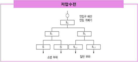 1. 상용전원의 수전방법 가. 저압 수전일 경우 인입 개폐기 직후에서 분기한 전용 배선 1) 인입선 : 특정소방대상물에 화재가 발생할 경우에도 화재로 인한 손상을 받지 않도록 설치하여야 한다. 2) 인입구배선 : 내화배선으로 하여야 한다.